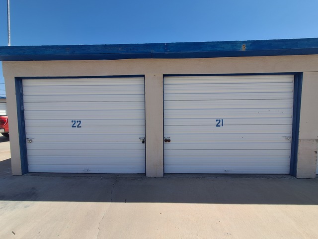Swinging man door, behind secure locking swing-gate. Security lighting. Not drive-up accessible. -DOOR MEASURES 3' WIDE X 6 1/2' TALL-